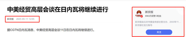 4.原文登载于新京报2025年05月11日关于“中美经贸高层会谈在日内瓦将继续进行”的报道